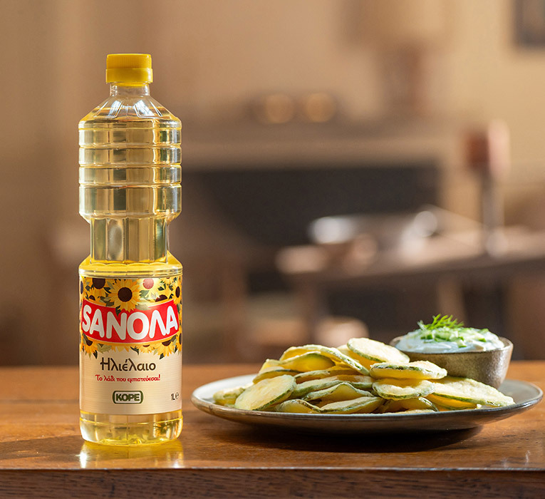 Ένα γευστικό έλαιο, που προέρχεται από τον αγνό ανθό του ηλιόσπορου. Το ηλιέλαιο SANOΛA, χάρη στην ελαφριά γλυκιά γεύση, το μοναδικό χρυσαφένιο χρώμα και την υψηλή διατροφική αξία που διαθέτει, καθιστά καθημερινά το μαγείρεμα σου, μια μοναδική εμπειρία διασκέδασης.