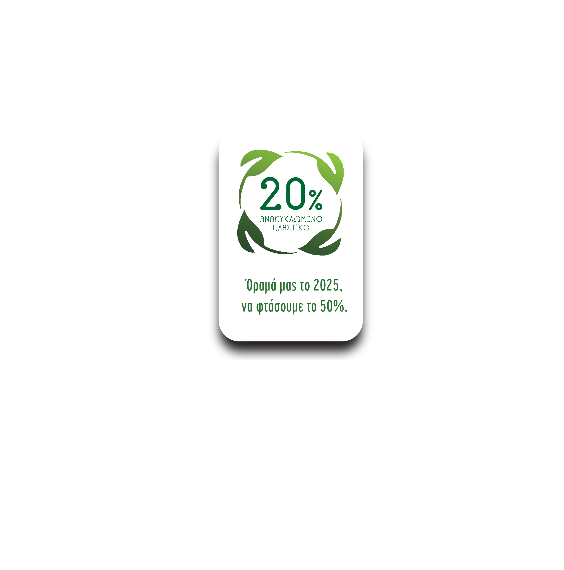 τις επιλογές που κάνουμε. 100% ανακυκλώσιμη συσκευασία, από 20% ανακυκλωμένο πλαστικό."